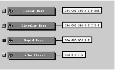 (6)定義數(shù)控程序加工過程程序段。程序加工過程中常用到的直線插補(bǔ) G01,圓弧插補(bǔ)G02\G03等,不再贅述,如圖6所示。